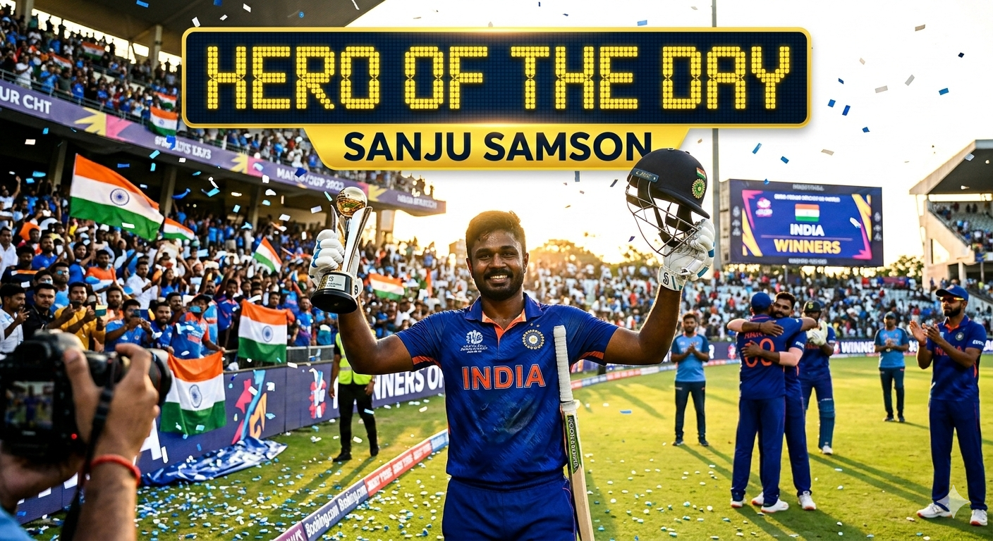 (టి20 వరల్డ్ కప్ వెస్టిండీస్ పై భారత్ ఘనవిజయం) సంజు సాంసంగ్ విరోచిత పోరాటం 97 పరుగులతో అజేయంగా భారత్…