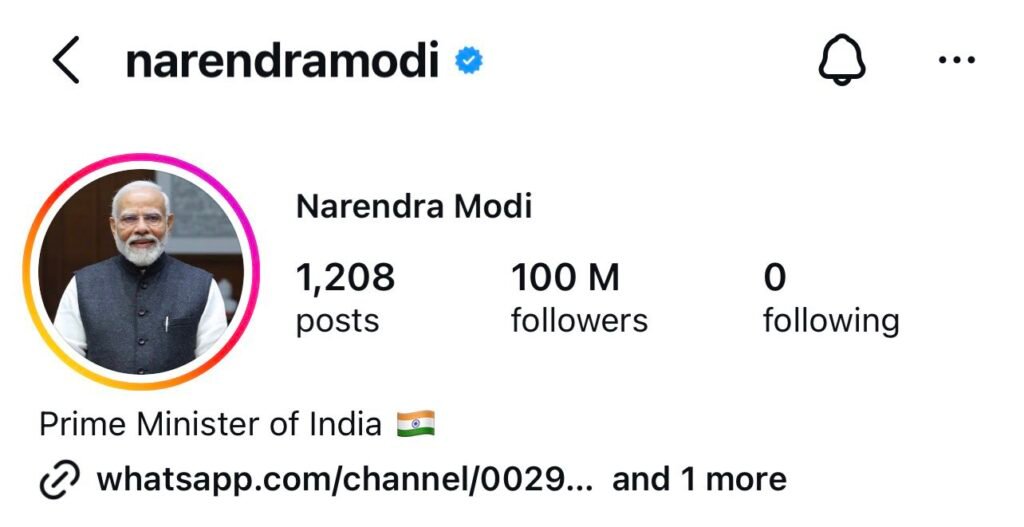 మన గౌరవ ప్రధాన మంత్రికి ఇన్స్టాగ్రామ్లో 100 మిలియన్ ఫాలోవర్స్!
