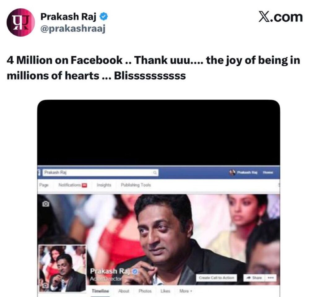 ఇక్కడ గతంలో ప్రకాష్ రాజ్ చేసిన ట్వీట్ ని కామెంట్స్ లో పెట్టి ప్రకాష్ రాజ్ ని చెడుగుడు ఆడుకుంటున్నారు నెటిజన్లు .